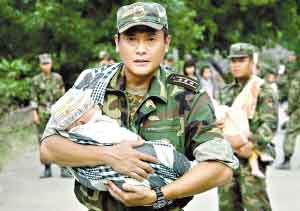 娶了個重慶老婆的香港明星魏駿杰在《震撼世界的七日》中扮演一個參與救災(zāi)的解放軍上校。