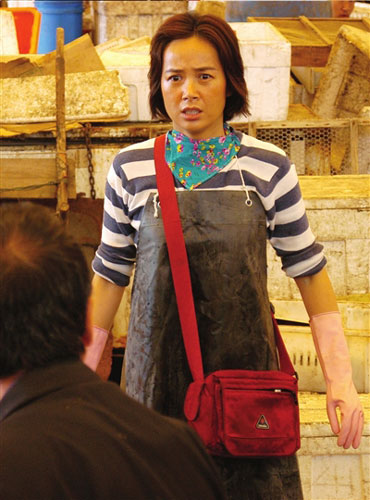 動氣氛很幸!。新劇中,蔣雯麗不僅不化妝,還讓化妝師每天給她往臉上畫雀斑和勞動婦女特有的“大紅腮”。