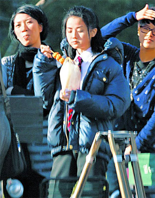 制作單位昨表示:“前天只是試戲,過年后才會(huì)正式開拍。因?yàn)榘a不會(huì)開車,才由工作人員幫忙!