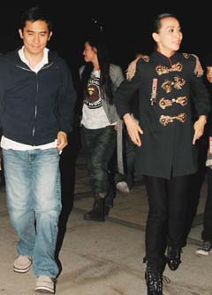 中新網(wǎng)10月29日電 劉嘉玲在故鄉(xiāng)蘇州拿下金雞影后,可謂“衣錦還鄉(xiāng)”,前(27日)晚頒獎典禮結(jié)束后她隨即和好友王菲、李亞鵬夫婦與舒淇、張震等人到酒吧慶功。男友梁朝偉雖然隔天一早就得離開,仍全程默默陪同。媒體問劉嘉玲是否封后就結(jié)婚?她大發(fā)嬌嗔,手指向梁朝偉說,“你問他啦!”