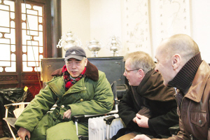 陳凱歌是華人導演中惟一獲得過金棕櫚大獎的,因此福茂來到中國后第一個想見的導演便是他。昨天下午,《梅蘭芳》劇組在懷柔拍攝一場黎明和陳紅的對手戲。3點左右,福茂先生一行3人在工作人員的引導下直接來到了拍攝現(xiàn)場。福茂見到坐在監(jiān)視器前的陳凱歌導演后,先來了一 個熱情的擁抱,隨后就坐在了監(jiān)視器前,與導演親切地交談起來。
