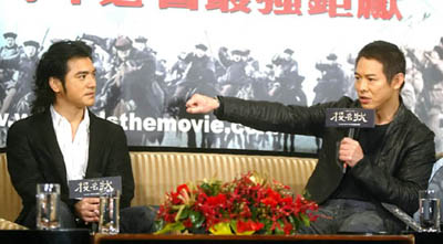 話鋒一轉(zhuǎn),李連杰又爆導(dǎo)演陳可辛一度在片場掉淚,陳可辛自我解嘲:“我不是在哭,是眼睛比較水汪汪!逼鋵(shí)是剛拍“投名狀”動作場面,才發(fā)現(xiàn)有很多對動作戲的想法都無法用“行話”向武術(shù)人員講清楚,導(dǎo)致進(jìn)度嚴(yán)重落后,又急又仿徨,終于病倒。雖然當(dāng)時已因“如果.愛”得了金馬獎,感受到莫大的鼓舞,卻還是沒突破拍片困境,一度想跟制片人要求換人接手。