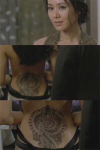 為了這個(gè)短暫的攝影畫面,孫藝珍可是一動(dòng)也不動(dòng)地連續(xù)3個(gè)小時(shí)趴著。據(jù)報(bào)道,光是準(zhǔn)備文身底部就花去了4個(gè)小時(shí),然后為了完美地展現(xiàn)千手觀音像,整整用了3個(gè)小時(shí)做細(xì)致的工作。
