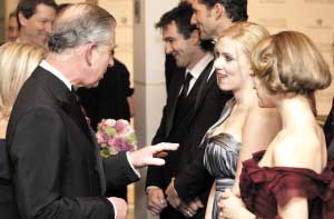 查爾斯王儲和斯佳麗·約翰遜寒暄。
