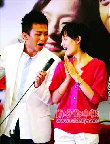 正在熱戀中的孫儷和鄧超前日齊齊亮相北京,為兩人攜手主演的電視劇《甜蜜蜜》在當(dāng)?shù)亻_播造勢。發(fā)布會上,兩人不時眉目傳情、親昵耳語,更搭肩合唱《甜蜜蜜》。孫儷還昵稱鄧超為“小綿羊”,現(xiàn)場大秀恩愛,毫不避嫌。