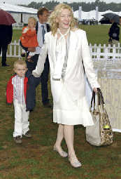 凱特·布蘭切特1992年畢業(yè)于澳大利亞國立藝術(shù)戲劇學(xué)院,因在電影《伊麗莎白》中扮演英國女王伊麗莎白一世而一舉成名,F(xiàn)年38歲的布蘭切特與身為編劇和戲劇導(dǎo)演的丈夫安德魯·厄普頓之前育有兩個兒子,分別是6歲的達(dá)希爾和3歲的羅曼。上周日,布蘭切特在悉尼生下兒子伊格納修斯·厄普頓,在布蘭切特和丈夫同時任藝術(shù)總監(jiān)的悉尼劇院任公關(guān)經(jīng)理的蒂姆·麥凱奧作為布蘭切特的發(fā)言人宣布了這一消息,并透露:“母子平安,一家人其樂融融。新生兒重達(dá)3.6千克!毕灿崅鞒龊,澳大利亞總理陸克文于第一時間發(fā)去賀電,祝賀這對夫婦第三度得子。