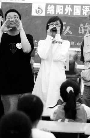 昨日下午2點半左右,韓國明星張娜拉突然出現(xiàn)在綿陽九州體育館的帳篷小學門前,讓在場的人大為吃驚。張娜拉下車后直奔帳篷內(nèi)探望正在上課的孩子們,孩子們一看到可愛的明星興奮地不停鼓掌。她先向同學們和老師、校長問好,并鼓勵孩子們要盡快從地震的不愉快中走出來,可以繼續(xù)快樂無憂地學習生活。
