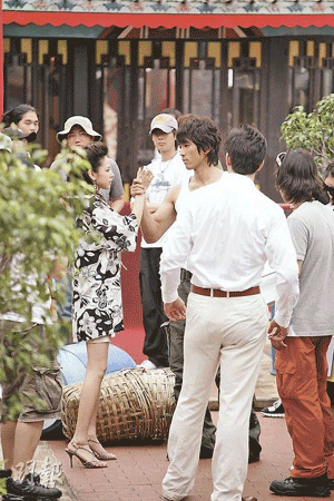 據(jù)香港《明報(bào)》報(bào)道,由于韓劇《伊甸之東》劇組要保持劇集內(nèi)容的神秘,故記者采訪時(shí)要保持遠(yuǎn)距離。不過(guò)現(xiàn)場(chǎng)得見(jiàn),宋承憲的“掃地”裝扮也有型過(guò)人,白色背心與軍褲,展示健碩身形。而跟他有對(duì)手戲的Zoie也被其電眼電暈,不敢與他對(duì)望。