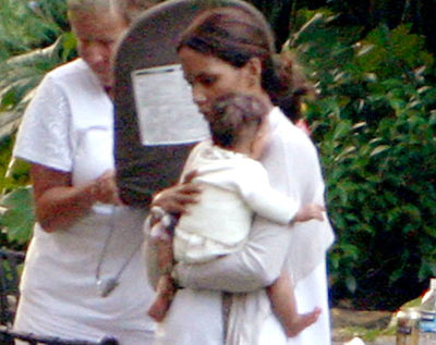 據(jù)國(guó)外媒體報(bào)道,41歲的哈莉·貝瑞上周被拍到抱著女兒娜拉出現(xiàn)在洛杉磯的一個(gè)公園里,哈莉·貝瑞的母親Judith Ann也在場(chǎng),不過(guò),小娜拉的頭埋在媽媽懷里,讓人看不清長(zhǎng)相。