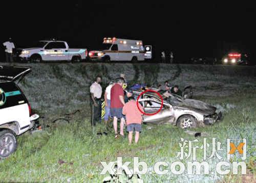 禍現(xiàn)場(chǎng),摩根駕駛的車(chē)輛嚴(yán)重變形,救護(hù)人員正在搶救摩根。
