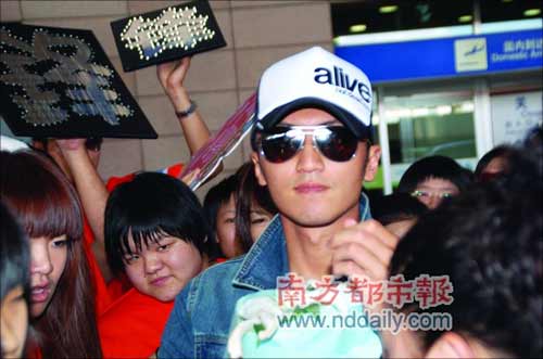 8月9日,謝霆鋒忙完北京的活動(dòng),馬不停蹄地趕到上海,為奧運(yùn)錄制節(jié)目。機(jī)場(chǎng)大批歌迷守候,謝霆鋒頭戴alive棒球帽,大墨鏡加上一身的牛仔服,顯得十分引人注目,一出現(xiàn)就吸引了大批粉絲圍上前。