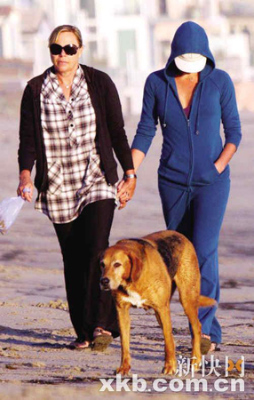 這位《意大利任務(wù)》中的女演員與她的母親格達·塞隆(Gerda Theron)牽著手帶著查理茲的狗兒們在馬里布的海灘上散著步、喝著紅酒,十分愜意。穿著寶藍色運動衣的塞隆看上去非常放松,她一手拿著紅酒,一手拿玩具逗玩自己的狗。