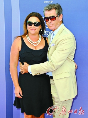 最帥的007皮爾斯·布魯斯南摟著變肥的老婆,一臉幸福。