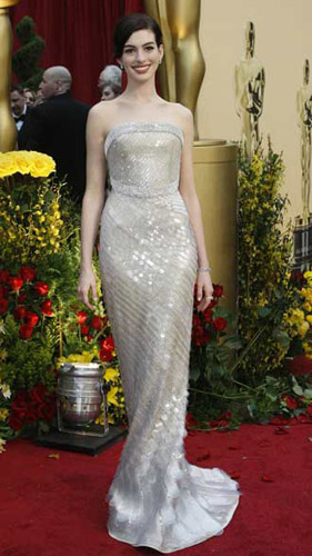 中新網(wǎng)2月24日電 臺(tái)灣媒體評(píng)論第81屆奧斯卡頒獎(jiǎng)典禮“星光”,本屆紅毯女星禮服的品味,不知是不是受到景氣“壓抑”,全都以清描淡寫(xiě)的“柔”字訣取勝,連發(fā)型都以輕挽低髻取勝,而眾女星中又以魚(yú)尾拖擺或希臘女神的斜單肩禮服最靚,少見(jiàn)俗艷。今年紅毯多尾“美人魚(yú)”令人驚艷,勇奪最佳女配角的佩內(nèi)洛普·克魯茲,佩戴肖邦珠寶和白色壓花低胸禮服,是第一尾美人魚(yú)。但仍敵不過(guò)穿著Giorgio Armani亮片魚(yú)尾禮服的安妮·海瑟薇。