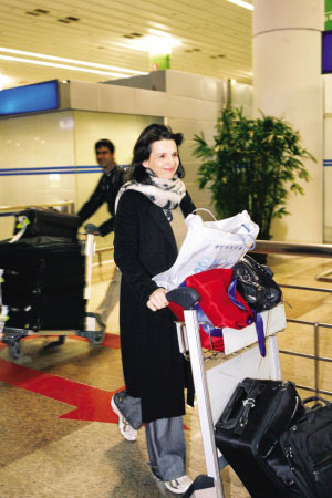 昨晚8時(shí)25分,奧斯卡得主、法國影星朱麗葉·比諾什由韓國首爾飛抵上海浦東國際機(jī)場(chǎng)。比諾什此次抵滬可謂十分低調(diào),現(xiàn)身機(jī)場(chǎng)時(shí)僅有一名男助理陪同。機(jī)場(chǎng)沒有影迷接機(jī),也沒有其他媒體來競(jìng)相采訪,接機(jī)的主辦方同樣沒有拿出顯眼的標(biāo)語,現(xiàn)場(chǎng)十分冷清。
