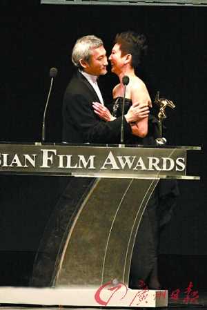在發(fā)表感言時,說到動容時,徐克還擁抱并親吻了施南生。在后臺采訪時,施南生回吻了徐克一下。問他們是不是真情流露,施南生卻不愿承認,開玩笑說:“還不是為了攝影記者好拍,為人民服務。”不過臉色出賣了她,她依然一臉緋紅。