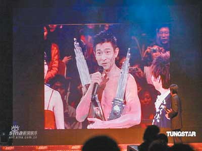 前晚(12月26日,下同),香港四大頒獎(jiǎng)典禮之一的“新城勁爆頒獎(jiǎng)禮2007”在灣仔會(huì)展中心舉行。劉德華、陳奕迅以及李克勤分奪5個(gè)獎(jiǎng)項(xiàng),成為全場(chǎng)之冠。由于劉德華前晚正在紅館舉行演唱會(huì),無(wú)法到達(dá)頒獎(jiǎng)現(xiàn)場(chǎng),主辦方竟把獎(jiǎng)杯送到華仔演唱會(huì)現(xiàn)場(chǎng),華仔第一次赤裸上身抱回5獎(jiǎng)。