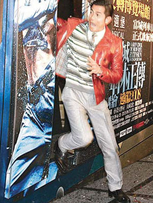 據(jù)香港東方日報(bào)報(bào)道,城城昨日在亞洲國際博覽館舉行“郭富城舞林正傳演唱會(huì)延續(xù)篇2008”記招,現(xiàn)場擺放了多個(gè)城城個(gè)唱造型的巨型紙板人,而臺(tái)中就是一卡1比1尺寸的“富城機(jī)鐵列車”布景板。當(dāng)滿心歡喜的城城走入“列車”拍照時(shí),布景板突然向外跌翻,幸好身手敏捷的城城飛身用雙手撐住布景板。城城成功營救“列車”后,即喜上眉梢自認(rèn)超人。其后大會(huì)宣布城城成為首位在機(jī)鐵列車車身有肖像的香港藝人。