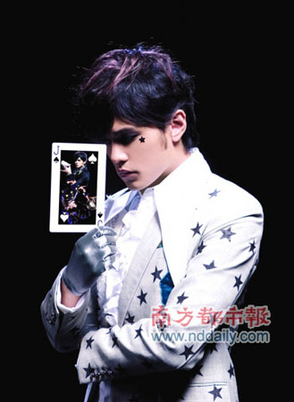 海報(bào)以黑桃J撲克牌做設(shè)計(jì),唱片公司如此詮釋———象征著周董的音樂(lè)蘊(yùn)含無(wú)限變化的可能,杰倫有時(shí)像魔術(shù)師一樣,對(duì)自己的音樂(lè)精益求精,給人神秘莫測(cè)的印象,有時(shí)創(chuàng)作又很天馬行空,如小丑般逗趣詼諧。以“撲克牌”作為設(shè)計(jì)的主題,正是源自周杰倫近期最自豪也是最擅長(zhǎng)的撲克牌魔術(shù)。而這款煙熏妝造型,讓人馬上聯(lián)想到希斯·萊杰在《蝙蝠俠之黑夜騎士》中的小丑造型。(記者 黃銳海)