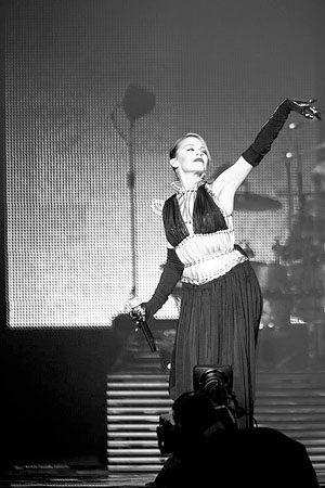 在整場(chǎng)演出中,她時(shí)常高呼“北京”,還用不標(biāo)準(zhǔn)的漢語(yǔ)向現(xiàn)場(chǎng)觀眾示好:“今天很開心,歡迎你們看演出!”并高舉著雙手,帶領(lǐng)著觀眾大呼“WOW!”