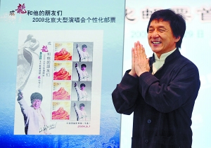 為了紀(jì)念5月1日“成龍和他的朋友們”的鳥(niǎo)巢演唱會(huì),中國(guó)郵政昨日正式發(fā)行了成龍個(gè)性化郵票,中國(guó)集郵總公司也制作了《成龍紀(jì)念郵冊(cè)》。昨天,成龍出現(xiàn)在首發(fā)式上,為郵票和郵冊(cè)揭幕。自稱“壓力很大”的成龍面對(duì)媒體訴起了苦,說(shuō)自己“日盼夜盼,希望鳥(niǎo)巢演唱會(huì)不要嗓子啞。”