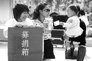 5月18日下午,國(guó)美第一城的部分居民在社區(qū)廣場(chǎng)上表演唱歌、朗讀等節(jié)目,以吸引眾人前來捐款,當(dāng)天獲捐數(shù)額達(dá)到了1萬多元。本報(bào)記者 王嘉寧 攝