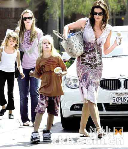 上周末,名模辛迪·克勞馥帶著兒子和女兒出游,享受閑暇時光。辛迪一身夏日休閑裝扮亮相,雖已年過40歲,但身材非常苗條。辛迪的兒子已經(jīng)8歲,是個金發(fā)小帥哥。這個帥氣的小家伙和媽媽都手拿冰淇淋,其樂融融。辛迪的女兒6歲了,眼睛和母親長得很像,還遺傳了母親的棕色頭發(fā),非常美麗。