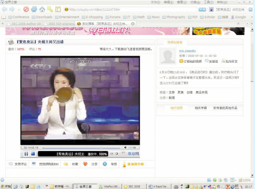 在這段19秒的視頻中可以看到,片頭剛出現(xiàn)“奧運進行時”的標題,背景畫面是福娃舉著火炬奔跑過長城、鳥巢,接著便插入了廣告。問題出現(xiàn)在第14秒,鏡頭突然切到了女主播對鏡梳妝的畫面,當時女主播拿著鏡子正在整理頭發(fā),那面大鏡子在整個屏幕上相當?shù)膿屟,畫面差不多有一秒鐘的時間。或許是導播發(fā)現(xiàn)了失誤,立刻將畫面切回到正常廣告中……一定是忙中出錯,切換到廣告的鏡頭居然鬼使神差地再一次回到了女主播身上,依然還拿著鏡子。在女主播兩次不合時宜的出鏡之后,節(jié)目才恢復(fù)了正常。貼出這段視頻的網(wǎng)友放炮說:“6月30日晚23點34分,《奧運進行時》播出前,突然鏡頭閃了一下,出現(xiàn)女主持拿著鏡子在整理頭發(fā)。而且還一連兩次呢!怎么CCTV又出錯了呢?”在強大的網(wǎng)友面前,央視的失誤似乎無地隱藏。對于央視又一次的穿幫,不少網(wǎng)友都顯得習以為常的樣子,直接用各種的表情進行回復(fù),也有個別網(wǎng)友表示這次的問題出在導播身上,不要老是拿主持人說事。
