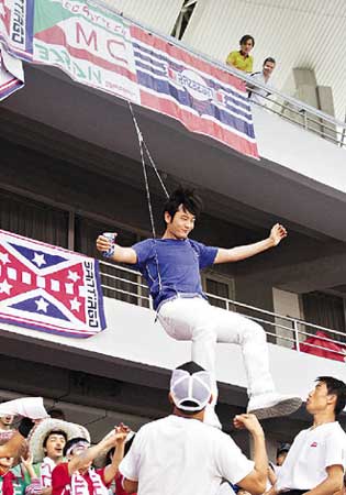 據(jù)臺灣“聯(lián)合報”報道,黃曉明拍百事廣告全力以赴,他會從運動場看臺飛躍而下,還跨越群眾頭上玩水上飄。黃曉明說:“有一個鏡頭是我從觀眾的頭上走過去,導演要我真的很用力踏到其中一些人的頭上,唉,真的很不好意思,因為有一個人被我弄傷了。”
