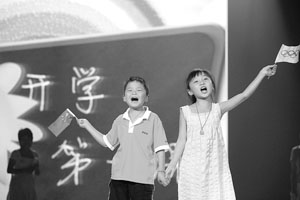今天上午央視開始錄制特別節(jié)目《開學(xué)第一課》,奧運(yùn)開幕式上的“四小齡童”于昨晚走進(jìn)央視錄播棚進(jìn)行練習(xí)和走臺(tái)?拐鹦∮⑿哿趾坪汀陡璩鎳(guó)》表演者林妙可一起合作了一首歌。