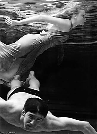 美國(guó)游泳天才菲爾普斯與名?_琳·特提妮共同為某雜志拍攝了一組水中寫(xiě)真。兩人在水里演繹浪漫情調(diào)。