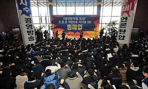 據(jù)悉,韓國(guó)媒體工會(huì)為阻止大國(guó)家黨的媒體相關(guān)法律修正案獲得通過,在今天早上6點(diǎn)開始舉行總罷工。由于媒體工會(huì)的支持與推動(dòng),加入該工會(huì)的相關(guān)媒體從業(yè)人員都可能加入罷工的行列。為此,MBC電視臺(tái)的負(fù)責(zé)人不得不臨時(shí)召集非工會(huì)員工來(lái)填補(bǔ)節(jié)目主持人和工作人員空缺,有觀眾擔(dān)心此次罷工將直接影響年底各項(xiàng)頒獎(jiǎng)活動(dòng)與慶祝典禮。田雯