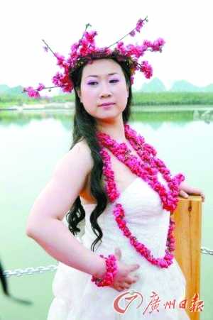 只見身穿白色塔形抹胸裙的芙蓉姐姐,對(duì)著鏡頭大擺POSE,胸前的桃花項(xiàng)鏈、手腕上的桃花手鐲以及粉色的桃花頭飾非常好看,只是芙蓉姐姐發(fā)福的身材,有些令人大跌眼鏡。