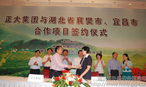 中新網(wǎng)7月8日電 據(jù)湖北外僑辦消息,7月8日上午,正大集團(tuán)與湖北省襄樊市襄陽區(qū)政府、宜昌市宜都市政府合作項(xiàng)目簽約儀式在武昌舉行。