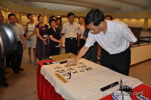 廣東華僑博物館館長王明惠向劉昆匯報了廣東華僑博物館籌建籌展情況,介紹廣東華僑歷史陳列主題展、廣東華僑民居展和館藏文物展的主要內(nèi)容。劉昆充分肯定廣東華僑博物館籌建籌展水平,表揚(yáng)省僑辦領(lǐng)導(dǎo)重視辦好廣東華僑博物館,博物館工作人員全力以赴,精心做好籌展工作,并欣然為廣東華僑博物館題詞“弘揚(yáng)華僑精神,建設(shè)文化強(qiáng)省”。(葉欣)