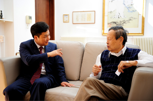 已是88歲高齡的楊振寧教授,見(jiàn)到友人朱奕龍一行來(lái)家拜訪,很高興,緊緊拉住朱奕龍的手,熱情地招呼朱奕龍坐在他的身邊,夫人翁帆沏上濃濃的茉莉花茶,大家暢敘友情。楊振寧教授還爽朗答應(yīng)朱奕龍的邀請(qǐng),明年春暖花開(kāi)的季節(jié),一定攜夫人到寧夏來(lái)走一走看一看。(舒展)