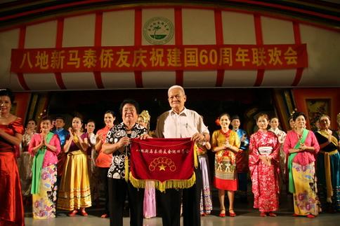 10月17日,《歌唱祖國》的大合唱再次在廣州萬寶大廈響起,僑友心聲,情深意濃。來自深圳、香港、珠海、汕頭、惠州、中山、梅州和廣州的新馬泰僑友歡聚一堂,載歌載舞慶祝中華人民共和國成立60周年暨廣州新馬僑友會成立24周年。廣東省僑聯,廣州市僑辦、僑聯,致公黨廣州市委員會的有關領導,以及馬來西亞愛國工委會、鳳凰聯誼會等海外僑社團代表到會祝賀。深圳新馬僑友會會長賴志平、原會長肖學聰、名譽會長莊榮新、深圳愛心媽媽陳觀玉等20余人赴廣州參加了聯歡活動,并獻上了文藝節(jié)目。