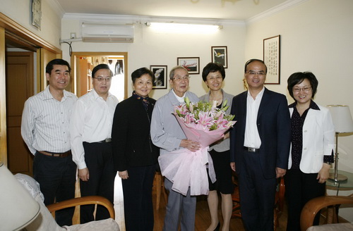 上海市委統(tǒng)戰(zhàn)部副部長(zhǎng)丁志堅(jiān)、市慈善基金會(huì)副理事長(zhǎng)兼秘書長(zhǎng)金閔珠、市僑聯(lián)副主席張癸和市僑辦副主任陳文佳看望了菲律賓歸僑、中科院上海植物生理生態(tài)研究所研究員施教耐院士和美國歸僑、中科院上海有機(jī)化學(xué)研究所研究員蔣錫夔院士,感謝他們?cè)诟髯缘目蒲蓄I(lǐng)域?yàn)樯鐣?huì)做出的杰出貢獻(xiàn),是僑界的驕傲。