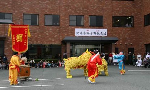 舞獅團一行參加了八代市的“妙見節(jié)”活動,拜會了八代市當?shù)厝A僑華人社團及僑領(lǐng),并與當?shù)匚瑾{團進行了交流演出,考察了八代市和熊本縣的經(jīng)濟建設(shè)和社會發(fā)展情況。