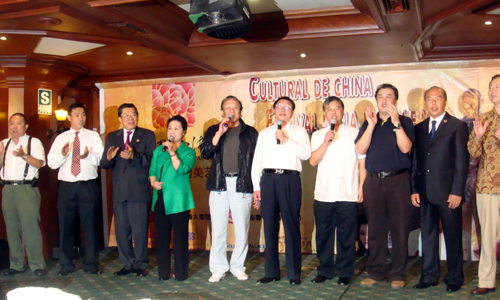 中新網(wǎng)2月22日電 據(jù)《南美僑報》報道,為了歡迎到秘魯訪演的“文化中國·四海同春”南美藝術(shù)團,以中華通惠總局為首的利馬各華人社團,21日晚在富臨門酒店舉行盛大歡迎晚會,國務院僑辦副主任馬儒沛、中國駐秘魯大使趙五一和通惠總局三位主席蕭孝權(quán)、周銳波、楊學勤等近五百人出席了晚會。