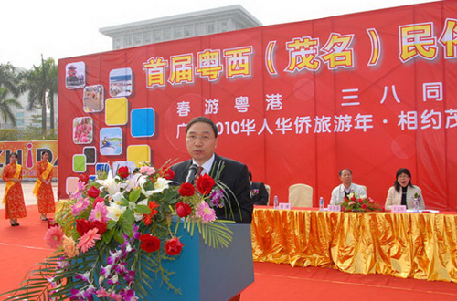 林琳在啟動儀式上作了講話。他首先代表廣東省僑辦向茂名全市人民表示熱烈的祝賀,并預祝首屆粵西(茂名)民俗風情旅游節(jié)取得圓滿成功!他指出,茂名市在首屆粵西民俗風情旅游節(jié)中同時舉辦“廣東2010年華人華僑旅游年·相約茂名”活動,既體現(xiàn)了這次旅游節(jié)的僑鄉(xiāng)特色,更體現(xiàn)了茂名市各級黨委政府對僑務(wù)工作的重視,對為僑服務(wù)和以僑為橋搞活經(jīng)濟、搞活旅游所作出的巨大努力,認為此舉必將為溝通海內(nèi)外茂名鄉(xiāng)親的聯(lián)系、發(fā)掘茂名旅游資源、進一步拓展和繁榮茂名的旅游市場發(fā)揮出積極的作用。