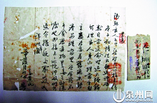 上圖為泉州市檔案館收藏的最早的僑批,系1911年十一月初八,一名晉江安海人的妻子寄給遠在菲律賓的丈夫的“回批”(回信),信中還寫到將丈夫寄來的錢都用在了哪里!盎嘏笔莾S批的一種,由于是由故鄉(xiāng)人寄往海外的回信,所以目前國內(nèi)數(shù)量不多,更加珍貴。(葉舒雯 陳一妮)