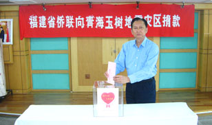 中新網4月22日電 據福建僑聯網消息,天災無情,人間有愛。4月21日上午,福建省僑聯積極響應福建省委組織部、省直機關工委的號召,舉行了向青海玉樹地震災區(qū)捐款的儀式。