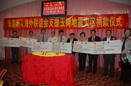 中新網(wǎng)4月30日電 據(jù)珠海僑務(wù)局消息,地震災(zāi)情牽動著億萬中國人民的心,也受到珠海海外聯(lián)誼會的潮商們的高度關(guān)注。為積極支持玉樹的災(zāi)后重建工作,繼08年汶川大地震該會捐資40萬元支持綿虒鎮(zhèn)涂禹山村重建格子巖組“僑心村”后,珠海潮人海外聯(lián)誼會又于4月27日舉辦現(xiàn)場捐款活動,呼吁珠海的廣大潮商伸出援手,募捐善款,幫助地震災(zāi)區(qū)同胞,抗震救災(zāi)、重建家園,為抗震救災(zāi)行動貢獻一份力量。廣東省珠海市政協(xié)副主席、市委統(tǒng)戰(zhàn)部部長羅碧堅、市僑聯(lián)主席李清出席了捐贈儀式。