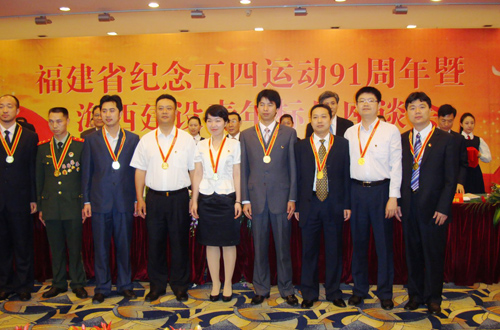 中新網(wǎng)5月6日電 據(jù)思明區(qū)僑聯(lián)消息,5月4日上午,在福建省紀(jì)念五四運(yùn)動91周年暨海西建設(shè)青年標(biāo)兵座談會上,福建省廈門市思明區(qū)僑聯(lián)青委會會長、廈門鷺達(dá)眼鏡有限公司董事長、高級經(jīng)濟(jì)師張和輝榮獲由中共福建省委組織部、福建省公務(wù)員局(福建省人力資源開發(fā)辦公室)、共青團(tuán)福建省委聯(lián)合頒發(fā)的第七屆“福建青年五四獎?wù)隆薄?table border=0 cellspacing=0 cellpadding=0 align=left>