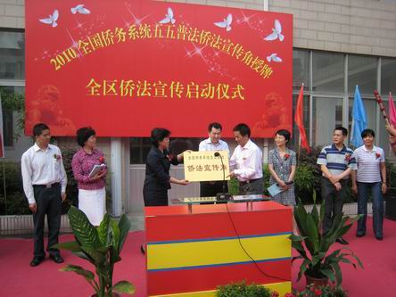 活動儀式上,江蘇省僑辦副主任季俊秋和常州市僑辦主任蔡楚秋共同為奔牛鎮(zhèn)“僑法宣傳角”授牌,并向鎮(zhèn)領(lǐng)導(dǎo)贈送了電腦和打印機。