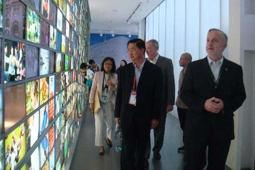 在聯(lián)合國(guó)館項(xiàng)目服務(wù)商、美國(guó)全美蘇浙同鄉(xiāng)總會(huì)會(huì)長(zhǎng)朱元忠的陪同下,崔明華一行又參觀了上海世博會(huì)聯(lián)合國(guó)館,并體驗(yàn)了在聯(lián)合國(guó)館內(nèi)舉行的中國(guó)茶藝表演,并于聯(lián)合國(guó)副秘書(shū)長(zhǎng)阿瓦尼·貝南進(jìn)行了親切的會(huì)談。崔明華最后也在留言薄上題詞:“和諧之理念,發(fā)展之動(dòng)力!