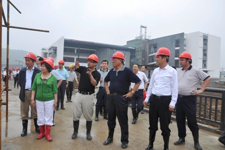 在四川省僑聯(lián)黨組書記周敏謙,中共綿陽市委副書記、市長曾萬明,中鐵二局集團(tuán)公司黨委書記鄧元發(fā)等人的陪同下,林軍、喬衛(wèi)一行冒著雨后的泥濘深入工地,詳細(xì)察看了教學(xué)樓、學(xué)生宿舍、食堂、實驗樓和行政樓等建筑的施工情況。
