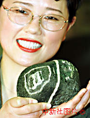 澳門二十二日開幕的南京文化周上,一枚帶有回歸字樣的天然"回歸石"首次公開對(duì)外展出。