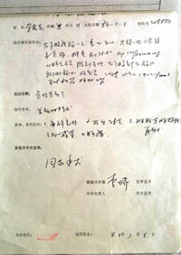 李洪志曾住院手術(shù)(一) ![]() 8月3日,吉林省人民醫(yī)院發(fā)現(xiàn)李洪志曾在該醫(yī)院做過(guò)闌尾炎手術(shù)的住院病歷。李洪志在1984年7月8日早晨突 發(fā)急性化膿性闌尾炎,住進(jìn)吉林省人民醫(yī)院普通外科,發(fā)燒38.9度,于當(dāng)天下午實(shí)施闌尾切除手術(shù),住院10天。由于當(dāng) 時(shí)醫(yī)生筆誤,錯(cuò)將李洪志寫作“李宏志”,根據(jù)病歷上的患者年齡、工作單位、家庭住址及家屬(李妻)的手術(shù)簽字,可確定 患者即李洪志。這是李洪志手術(shù)時(shí),其妻簽署的術(shù)前文件。經(jīng)公安部門鑒定,簽字確為李洪志妻子李瑞親筆所簽。張寶江攝( 新華社稿 傳真照片) |